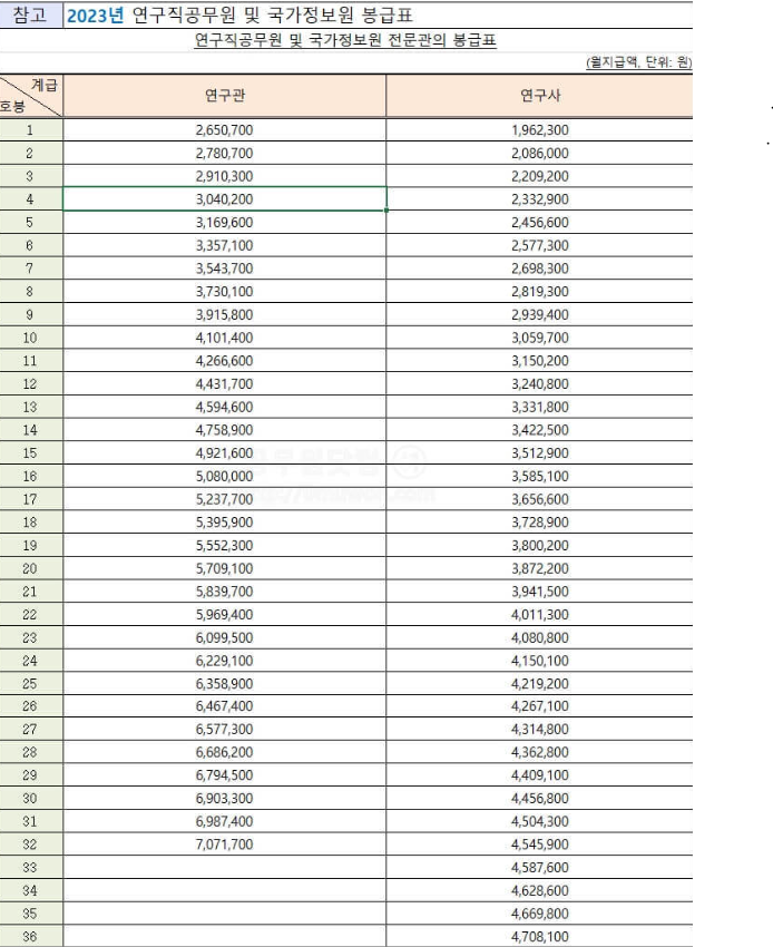 참고로 2023년 공무원 월급이 올랐습니다.