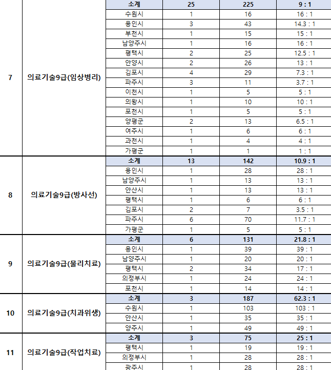 2022년 임상병리 9급 경쟁률 8명선발 128명접수 16:1